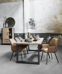 Dit industriële tv-meubel Verato is gemaakt van eikenhout met een metalen frame. Eikenhout kenmerkt zich door de fijne nerf, vlamtekening en de wisselende kleurschakering. Elke boom heeft een eigen uitstraling door de groei en weersinvloeden. Structuur, nerfschakering, windbarstjes, haarscheurtjes en de aanwezigheid van grote en kleine knoesten getuigen van jarenlange groei en maken het hout van de boom authentiek.