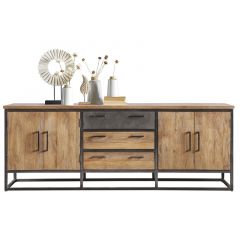 Tv-meubel Mesola is een trendy kast met een industriële uitstraling. De warme, lichtbruine kleur en het metalen frame zorgen voor een unieke sfeer in je woonkamer. Deze robuuste kast is gemaakt van massief mangohout. Dit hout heeft een natuurlijke uitstraling met verschillende lijnen, nerven en kleurschakeringen. Hierdoor is ieder meubel uniek. Het hout is afgewerkt met een transparante lak, zodat er niet snel vlekken op ontstaan en het onderhoud eenvoudig is.