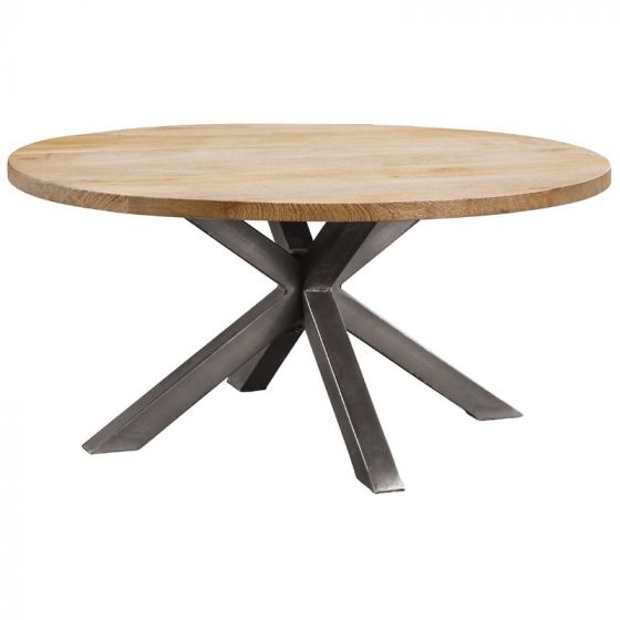 Salontafel Mesola is een trendy tafel met een industriële uitstraling. De warme, lichtbruine kleur en de metalen spinpoot zorgen voor een unieke sfeer in je woonkamer. Deze robuuste tafel is gemaakt van massief mangohout. Dit hout heeft een natuurlijke uitstraling met verschillende lijnen, nerven en kleurschakeringen. Hierdoor is ieder meubel uniek. Het hout is afgewerkt met een transparante lak, zodat er niet snel vlekken op ontstaan en het onderhoud eenvoudig is.