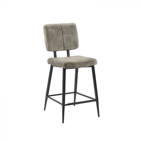 Barkruk Gento is uitgevoerd in een heerlijk zachte velvetstof in een grijze kleur. Velvetstof heeft rechtopstaande, korte vezels, die afhankelijk van de lichtinval en door over de stof te wrijven, lichter of donkerder van kleur lijkt. De stof heeft een luxe uitstraling en voelt zacht en comfortabel aan.