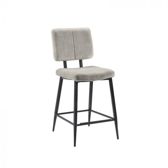 Barkruk Gento is uitgevoerd in een heerlijk zachte velvetstof in een lichtgrijze kleur. Velvetstof heeft rechtopstaande, korte vezels, die afhankelijk van de lichtinval en door over de stof te wrijven, lichter of donkerder van kleur lijkt. De stof heeft een luxe uitstraling en voelt zacht en comfortabel aan.