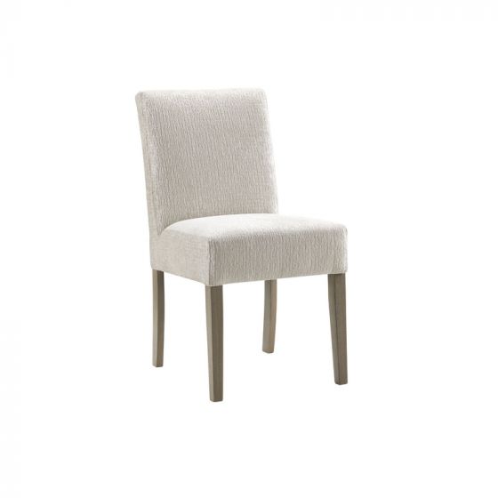 Eetkamerstoel Avanza is bekleed met een luxueuze ecru kleurige veloursstof. Deze hoogwaardige stof voelt heerlijk zacht aan en heeft een rijke, volle uitstraling. Door de fijne vezelstructuur en het subtiele 3D-effect ontstaat er een levendig schaduweffect dat mee verandert met de lichtinval. Dit geeft de stoel een warme en dynamische look. De lichtbruine/grijze kleur van de houten poten maken het geheel af en zorgen voor een moderne, strakke uitstraling. De poten zijn al gemonteerd, dus de stoel is direct klaar voor gebruik.