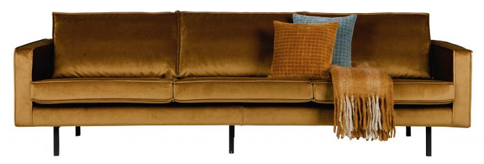 3 zits bank Rodeo, stof Velvet kleur honing geel, pootjes zwart metaal.