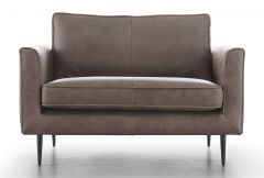 4 zits bank Dutchz 1300, met 2 zitkussens, leder Twilight kleur 16001 dark brown (met gewone stiknaad).