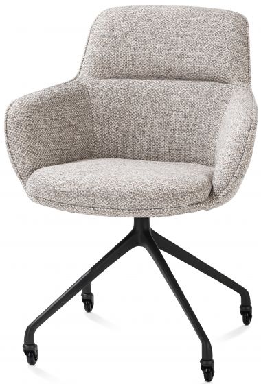 Armstoel Mateo, frame met wielen kleur zwart, stof Bellini kleur kiezel.