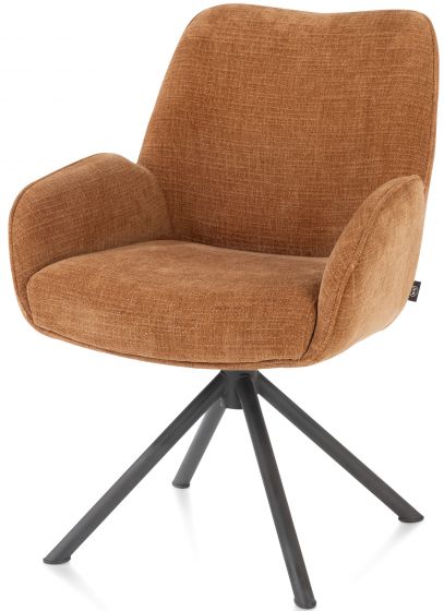Armstoel Riley, stof Cadiz kleur koper, draaipoot metaal kleur graphite.
