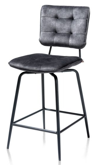 Barstoel Manou, pootjes zwart metaal, stof Karese kleur antraciet.
