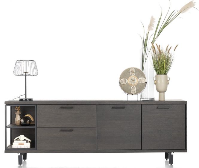 Dressoir Ridgefield, 2 deuren + 2 laden + 2 open vakken, kleur Castle antraciet.