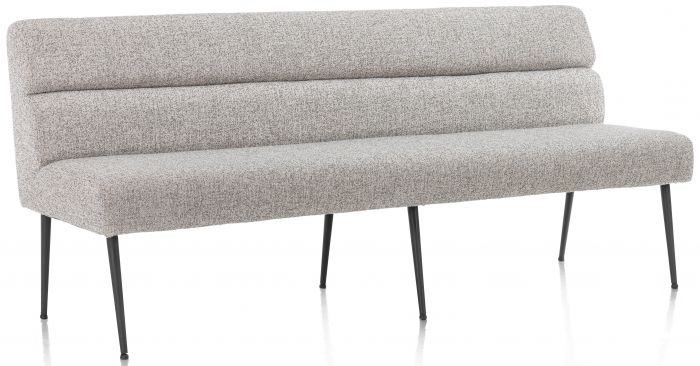 Eetkamerbank Jace, 200 cm breed, stof Luton kleur grijs, met pocketvering in de zitting, pootjes metaal.