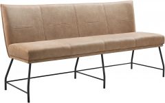 Eetkamerbank Rantio van 180 cm breed in stof Chivas kleur 65 grey, met trekstrook in de rugleuning, pootjes zwart metaal.