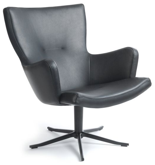 Draai-fauteuil Gyro, leder Fantasy kleur black, draai-voet zwart metaal.