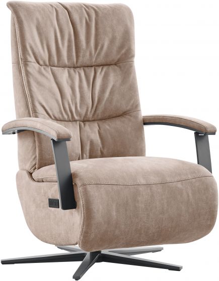 Relaxfauteuil Lerira, micro-leder Bora kleur Clay, maatvoering small, electrisch verstelbaar dmv 2 motoren, met memory-foam in de zitting en de rugleuning, stervoet zwart metaal.