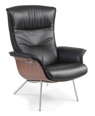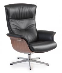 Relaxfauteuil Prime, romp fineer, draaipoot aluminium met hout, leder Fantasy kleur black.