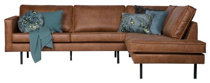 Hoekbank Rodeo, uitvoering rechts, microleder kleur cognac.