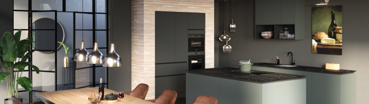 Jouw olijfgroene keuken in verschillende opstellingen.