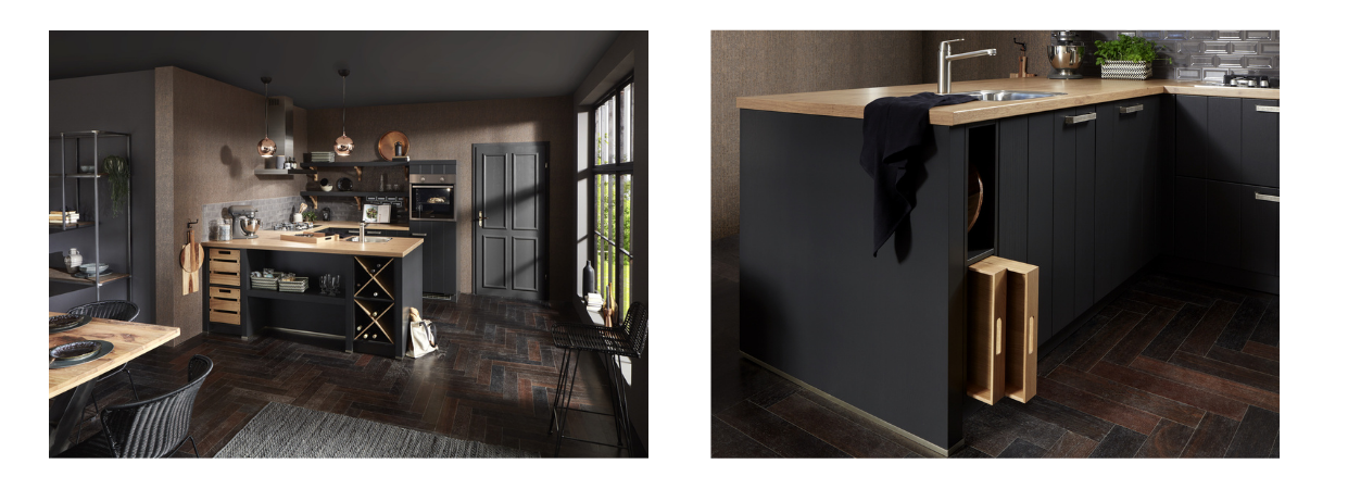 Zwarte keukens combineren met hout