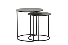 Set van 2 salontafels Rengo, frame zwart, bovenblad kleur antiek lood, afmetingen: H41 met doorsnede van 76 cm + H37 met doorsnede van 61 cm.