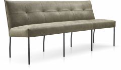 Eetstoel Dutchz 1700, leder Kenia kleur Olive, zwarte pootjes met zwarte skate-wielen.