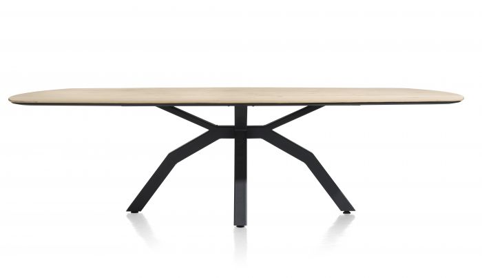 Eetkamertafel Livada, eiken wild fineer kleur naturel gelakt, OVAAL 220 x 108 cm, op spinpoot metaal (zonder hout-inleg).