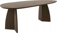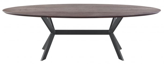 Eetkamertafel Taranto, massief eiken ovalen blad in de kleur Coffee (90.5) met verjongde bladrand, metalen vlinderpoot zwart metaal, afmeting: 260 x 125 cm.