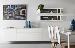 Wandmeubel Now! Vision, lowboard met klep en 2 laden en 3 open vakken in de kleur grijs + 2 hangelementen.