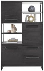 Vitrinekast Formia, in Lamulux kleur Noir, 2 deuren + 2 glasdeuren.